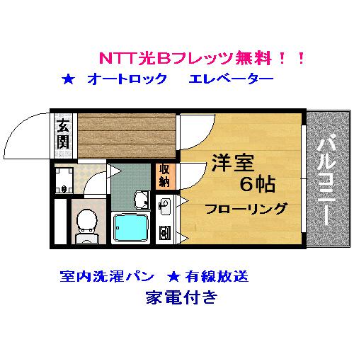 エアコン・エレベーター・オートロック・駐輪場・有線放送・電気式コンロ付き・室内洗濯パン